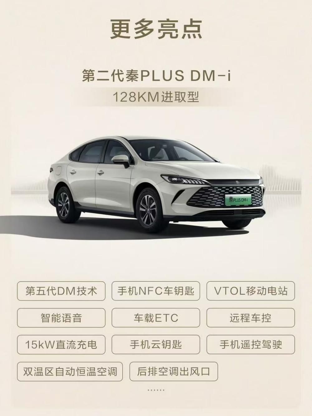 在基础配置方面,秦 PLUS DM-i 同样诚意满满。入门车型就配备了 NFC 钥匙、车载 ETC、智能语音、能外放电的 VTOL 移动电站等实用功能,为用户的日常使用和出行提供了极大的便利。无论是城市通勤还是郊外自驾游,秦 PLUS DM-i 都能轻松应对,为用户带来全方位的优质体验。