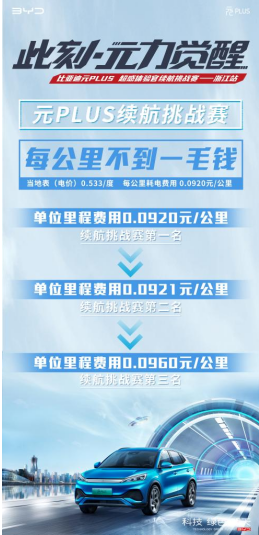 2022年9月26—27日,#此刻·元力觉醒 比亚迪元PLUS超感体验官续航挑战赛@浙江站精彩落幕,媒体大咖朋友们相逢雅致杭城,总共途经杭州,诸暨,武义三地,全程约3128.KM,一同元气出发,探秘超A潮跑元PLUS的能耗成绩。