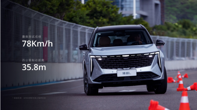 受益于中欧联合专业底盘调校、190mm长行程SN阀系减震器、DP-EPS双小齿轮式电动助力转向系统和VDDM车辆动态控制系统等顶级硬件配置的赋能,博越L的麋鹿测试成绩可达78km/h, 100km/h~0制动距离仅为35.8m,0~100km/h加速时间仅为7.4s,机械素质媲美高价值豪华品牌,驾控安全性能堪称赛道级表现。