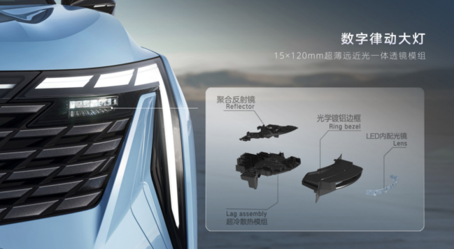 直观呈现“科技感”的造型设计,无疑是博越L的数字律动大灯。由182颗LED发光单元组成的粒子射线灯组,采用首发15×120mm的行业最扁平化“刀锋扁透镜模组”,光照强度可达178LX(勒克斯),远光有效照射距离长达168m,一辆车就能照亮一个足球场。粒子射线灯组与发光logo一起构成了“星际之门”独特造型,形成极高的辨识度,也能与尾灯组在迎宾、欢送、锁车延时等多种特定场景下,演绎兼具观赏性和功能性的“流光灯语”,给予用户更多的尊崇感。
