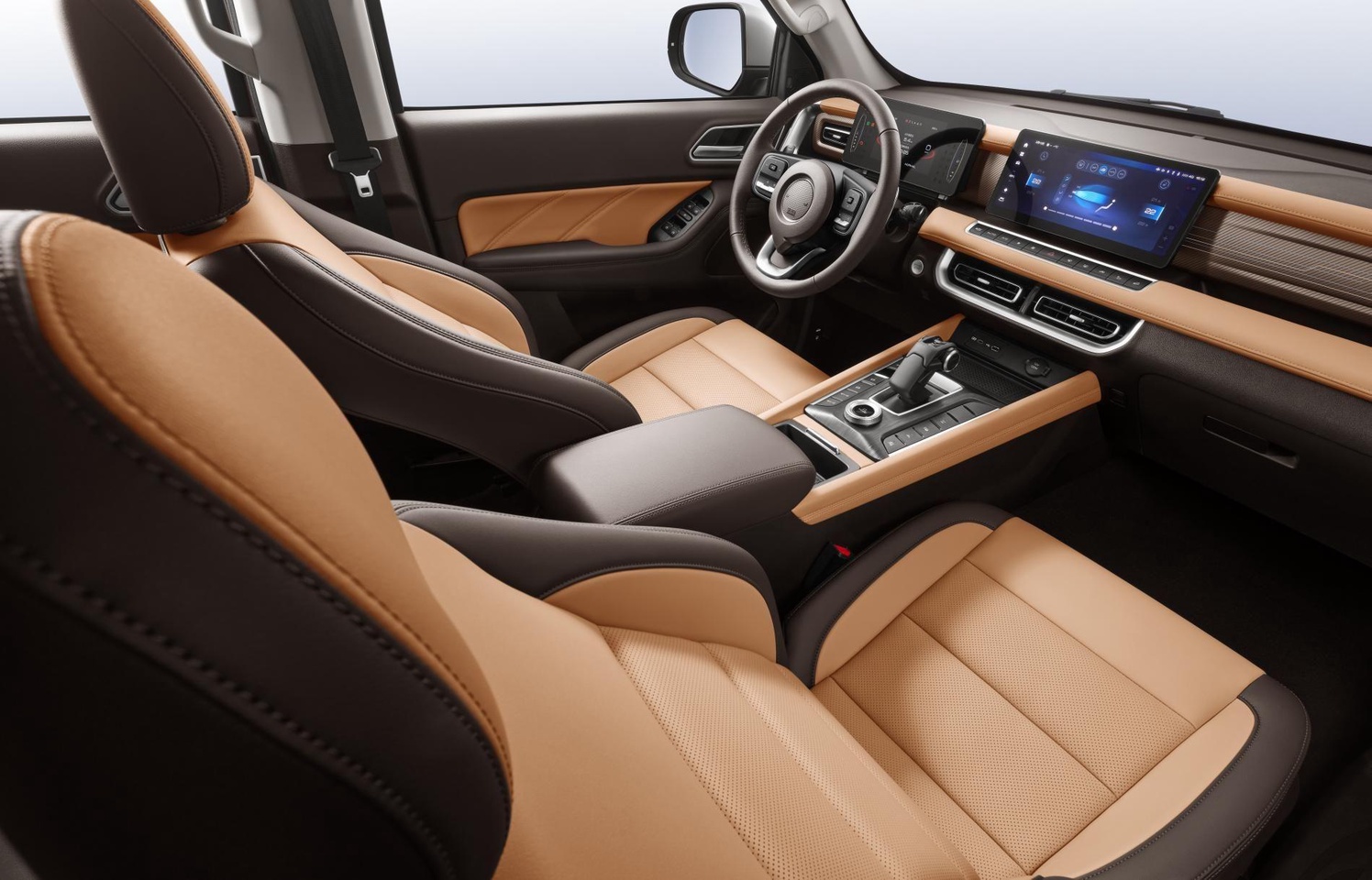 乘用车级舒适性。2023款乘用炮搭载2.0T+8AT黄金动力组合,匹配五连杆后悬架及TOD智能四驱,舒适性媲美同级SUV。全车100余处采用隔音、吸音设计处理,采用双层隔音玻璃,带来优异的NVH静谧表现;升级四门一键升降&防夹&自动闭窗、50W无线快充等贴心装备,驾乘舒心惬意,一路畅享。