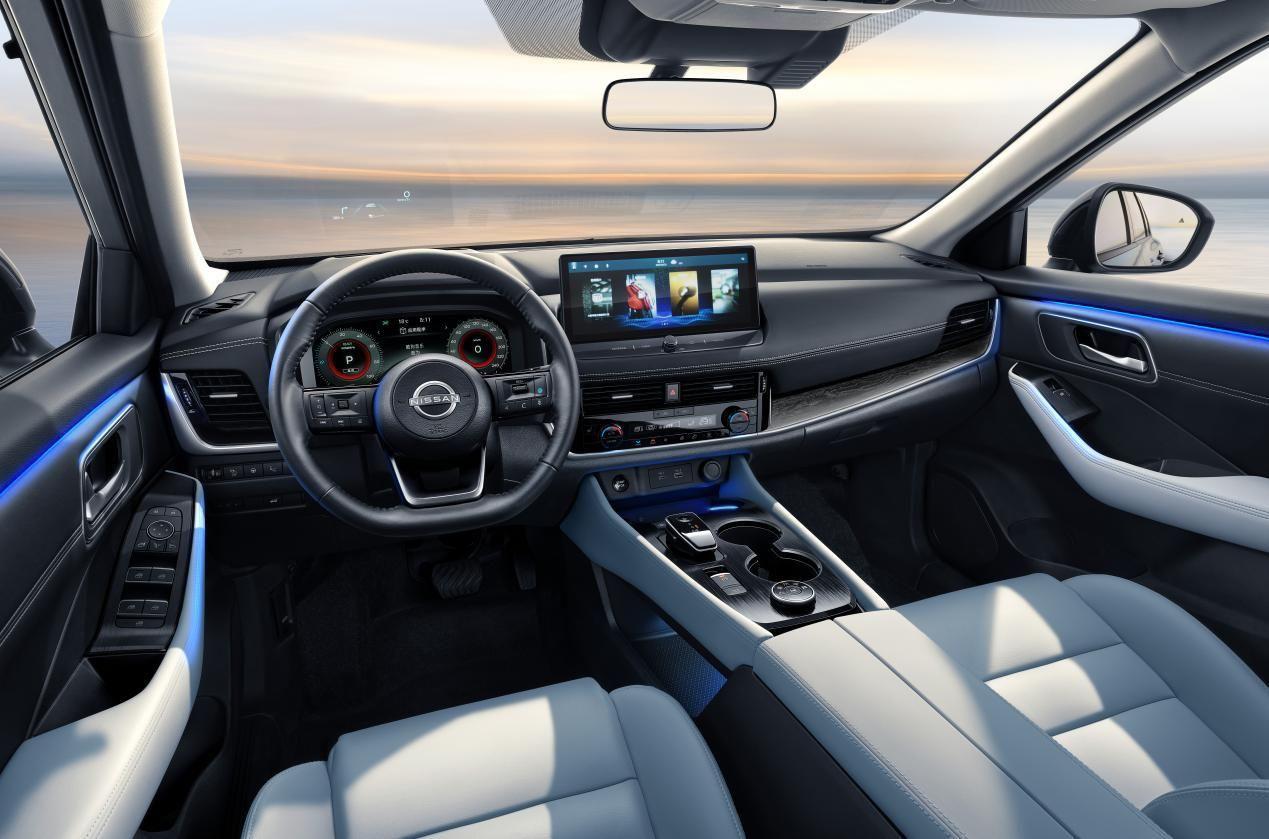 车内空间方面,超混电驱奇骏中控台等位置采用高质感金属拉丝纹理及木纹膜片加饰面料,方向盘轮缘包覆顶级smooth皮,全新云雾蓝配色,视觉精致,触感柔软细腻。加上极具科技感的LED氛围灯,营造时尚动感的车内氛围。
