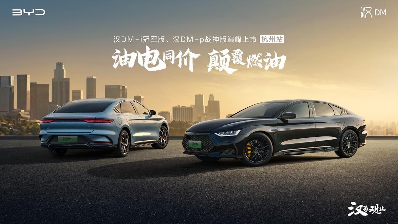 2023年5月27日,油电同价 颠覆燃油——汉DM-i冠军版、汉DM-p战神版在杭州巅峰上市。汉DM-i冠军版和DM-p战神版的耀目登场,将进一步提升汉家族的产品竞争力,将颠覆进行到底,夺回中国B级轿车市场话语权。