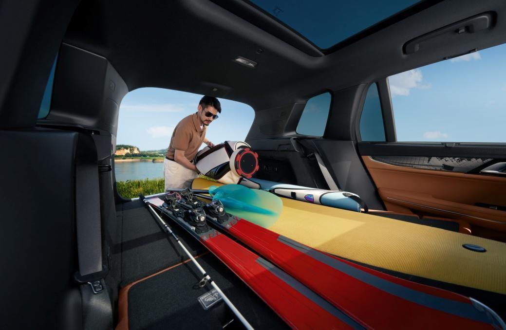 旗舰的体量从二排延伸至车尾。领克09大五座拥有691L超大容积后备厢,在二排座椅放倒状态下,最大可扩容至1522L、最大纵深达2075mm,露营帐篷、钓鱼杆、冲浪板、高尔夫球包等户外装备统统轻松装下,充分满足每一位用户的极致需求。以大空间为载体,承梦想格局,让用户放怀天地,从容而行。