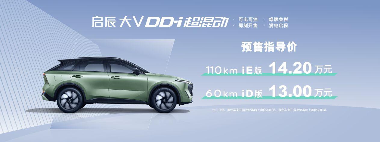 2023年6月24日,“V快乐满电启辰”东风日产新能源启辰大V DD-i 超混动预售品鉴会来到了素有“人间天堂”之称的杭州。启辰大V DD-i 60km iD版预售指导价13万元,启辰大V DD-i 110km iE版预售指导价14.2万元,目前已面向全国开启预售,再度掀起插混SUV热潮,刷新13万级插混SUV天花板。