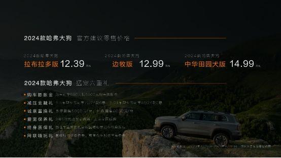 2024款哈弗大狗现已上市,共推出拉布拉多版 、边牧版和中华田园犬三款车型。