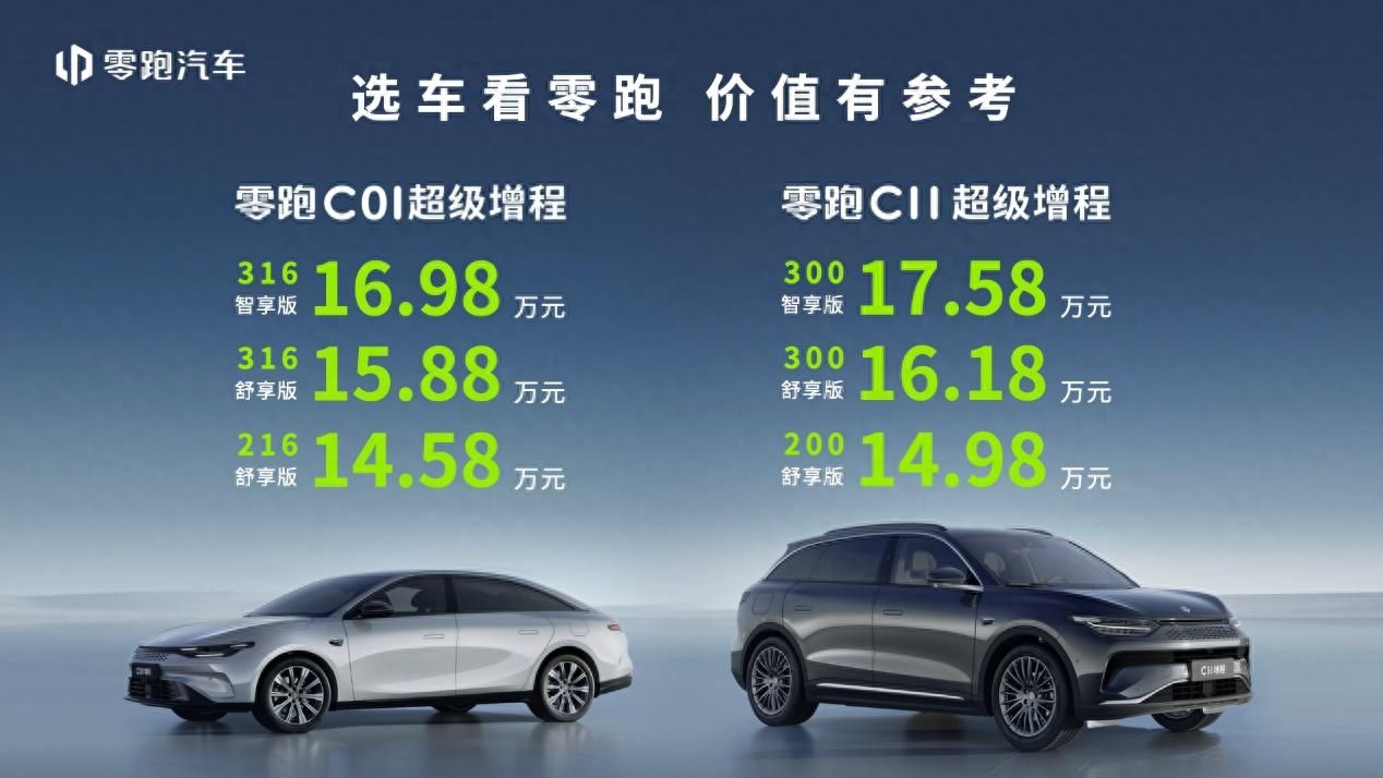 9月20日,零跑汽车在浙江⾦华新能源汽⻋⼩镇举办“超级增程·超真诚”发布会,共推出6款全新车型。零跑C01超级增程以及零跑C11新增的超级增程版型同步上市,双车协同加速“双动力”战略落地,其中零跑C01超级增程216舒享版14.58万元、316舒享版15.88万元、316智享版16.98万元,零跑C11超级增程200舒享版14.98万元、300舒享版16.18万元、300智享版17.58万元。
