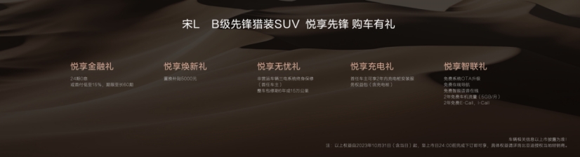 宋L以先锋诠释感官体验,以科技书写豪华新篇,以时尚彰显独特个性,致力成为B级SUV市场先锋,为主流家庭用户带来多元化、个性化、智能化的用车新体验。