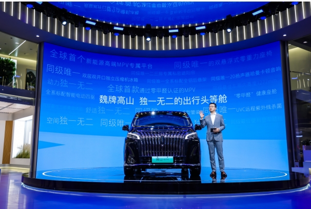 架以及高效能电四驱混动架构。 在这一平台架构之下,魏牌根据用户多元化的价值需求,量身打造了两款出行头等舱——高山以及高山四驱行政加长版。高山重点满足大家庭出行,兼顾事业发展,带来稳稳的幸福;高山四驱行政加长版以独有的气场,彰显大事业、大格局。 因此,高山系列全面满足家庭通勤、家人旅行、商旅出行、贵宾接送、高效办公”等高频场景,重新定义新时代下新能源 MPV 的标准。 独一无二的多变大空间。魏牌高山得益于MPV专属平台,在整车设计之初,就把挑战公摊率当成最高的空间目标之一。5米的车长,内部可以达到5米2级的空间尺寸,使高山的得房率做到了61.1%,让用户享受大平层般的自由空间,同时又解决了停车难的困扰。 同级独一无二的1277mm的车内高度,即便身高1.2米的儿童,也可以在车内直接走到第三排。同级唯一的二三排1845mm超长共轨设计,同级遥遥领先,即能实现乘坐灵活的座椅布局,又能兼顾宽敞的储物空间,满足多样化的出行需求。 此外,高山四驱行政加长版还拥有独一无二的最大尺寸。5米4的车长,车内空间纵向长度更是达到了3823mm,凭借高于同级的空间体量,营造出独一无二的旗舰气场! 独一无二的航母级安全。作为第三移动生活空间,高山带来的不仅是空间的自由,更是全家人安全的保障。整体采用三重高强度笼式车身,白车身高强度钢比例达81.96%,A、B柱加强板高强钢,最高达2000MPa,提供堡垒级守护。同时,在用户关注的电池包安全问题上,魏牌高山通过52项安全测试以及云端24h诊断监控,实现全天候的电池管理安全,无论你在途中还是熟睡,都不必担心电池安全。同时,高山也是首款通过中汽研“零甲醛”认证的MPV,配备的全时座舱新风系统,提供婴儿般的健康守护。 独一无二的豪华头等舱。高山众多豪华配置将氛围的豪华与功能的豪华合而为一,带来触手可及的高端商务出行体验。其搭载的同级唯一的双层双开口独立压缩机冰箱,最低0度最高50度的冷暖双模式冰箱,可同时满足全家人需要;专为6座开发的语音识别系统,6音区识别,实现面对面的轻松畅谈;此外动态星空穹顶设计结合场景的多重氛围表达,为用户“专属”定制,实现“座座皆豪华,人人VIP”的顶级头等舱体验。 独一无二的电四驱混动。高山采用混动专用发动机+前后双驱动电机的高能规格动力配置,搭配高效能混联DHT变速器,综合运行功率高达358kW,最大扭矩762N•m,后桥均配备135kw的大电机,百公里加速仅需5.7秒,让你想超就超,享受激情嗜速的驾控体验。其混联系统包括串联增程、并联和直驱,增程约等于三分之一混联,针对不同场景提供更智能的动力策略,进一步降低能耗,拓宽生活半径。 此外,两款魏牌高山共创版正式亮相,为用户提供4座改装及6座改装两套改装方案,满足用户多种出行喜好。作为独一无二的出行头等舱,高山以全新标准,给出新时代MPV解决方案,为用户带来高端愉悦的出行生活。 打造技术领先,用户为先的高端新能源汽车品牌 面对新能源、智能化行业浪潮,魏牌不忘造车本质,坚持长期深耕技术赛道,不断提升智能化水平,凭借混联DHT、咖啡智能等技术迭代升级,为更多家庭带来智能愉悦的出行体验。 在高阶智能辅助驾驶上,魏牌用户Coffee Pilot智能辅助驾驶里程超过6100万公里,使用智能辅助驾驶行驶总时长达到2170小时,高速NOH行驶里程超过937万公里,高速NOH月度活跃率超88%。智能化已经成为越来越多用户选择魏牌的重要因素。 不仅如此,魏牌今年多次对产品进行OTA升级。蓝山上市7个月时间,累计完成3次OTA升级,升级优化了70余项功能。其车机逻辑升级以及NOH可视化的导航信息强化智能化体验,新增智慧巡航能量回收,让续航里程更远,为用户带来常用常新的用车体验。 魏牌“大六七座双旗舰”品类矩阵,助力品牌持续向上 2023年新能源赛道竞争趋向白热化,各大品牌加速新能源产品布局。魏牌大六七座双旗舰高山、蓝山两款重磅新品,实现由单一品类布局迈入多元发展的全新时代,成为多品类的高端智能新能源品牌。随着产品的丰富,将进一步扩充产品矩阵,实现品牌势能的再度壮大。 作为长城集团高端化发展的先锋军,魏牌不断满足用户日益升级的高品质出行需求,打造“技术领先、用户为先”的高端智能新能源品牌。选择魏牌,就是选择一种美好愉悦的出行生活方式。未来,魏牌将以全新标准,陪伴更多用户踏上幸福美满的旅程。