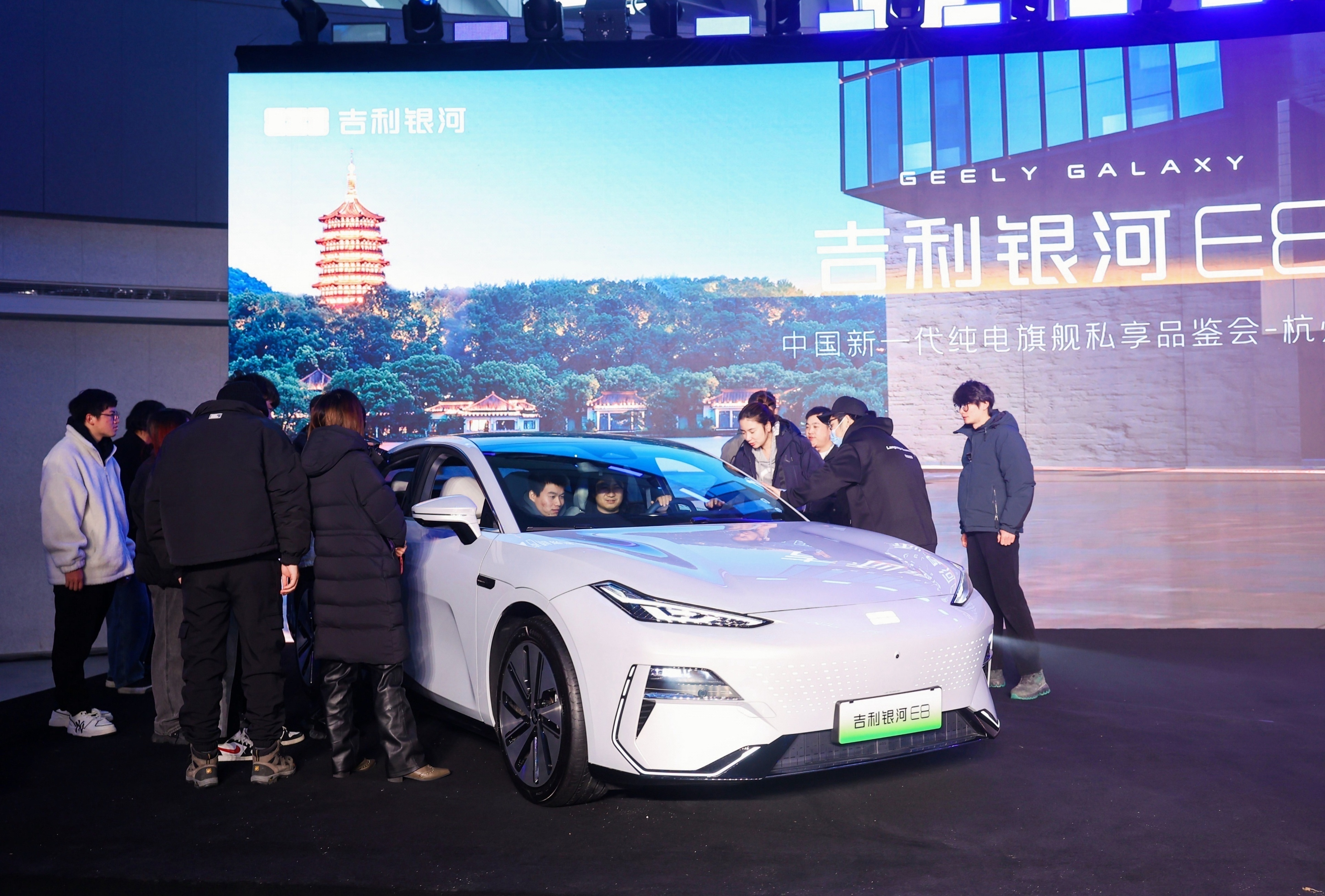 吉利银河E8中国新一代纯电旗舰私享品鉴会-杭州站活动为杭州的汽车爱好者们带来了一场视觉和触觉的盛宴。通过近距离感受吉利银河E8中国新一代纯电动旗舰,大家对吉利银河E8的优秀品质和性能有了更加深入的了解。吉利银河E8以旗舰级的美学、性能、座舱与安全实力,为主流纯电用户带来真正旗舰级、行政级的出行体验。