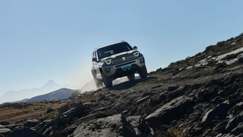 当车辆行驶在城市铺装路面时,稳定杆处于连接状态,车辆行驶稳定性大幅提升;在极端越野场景下,车内驾驶员可一键断开稳定杆,使车辆增加60mm悬架反跳行程,使轮胎紧紧接触地面产生附着力,配合“三把锁”和强大稳定的动力输出,即使单轮着地,也能从容通过越野困境,驾驶安全性也大大提升。
