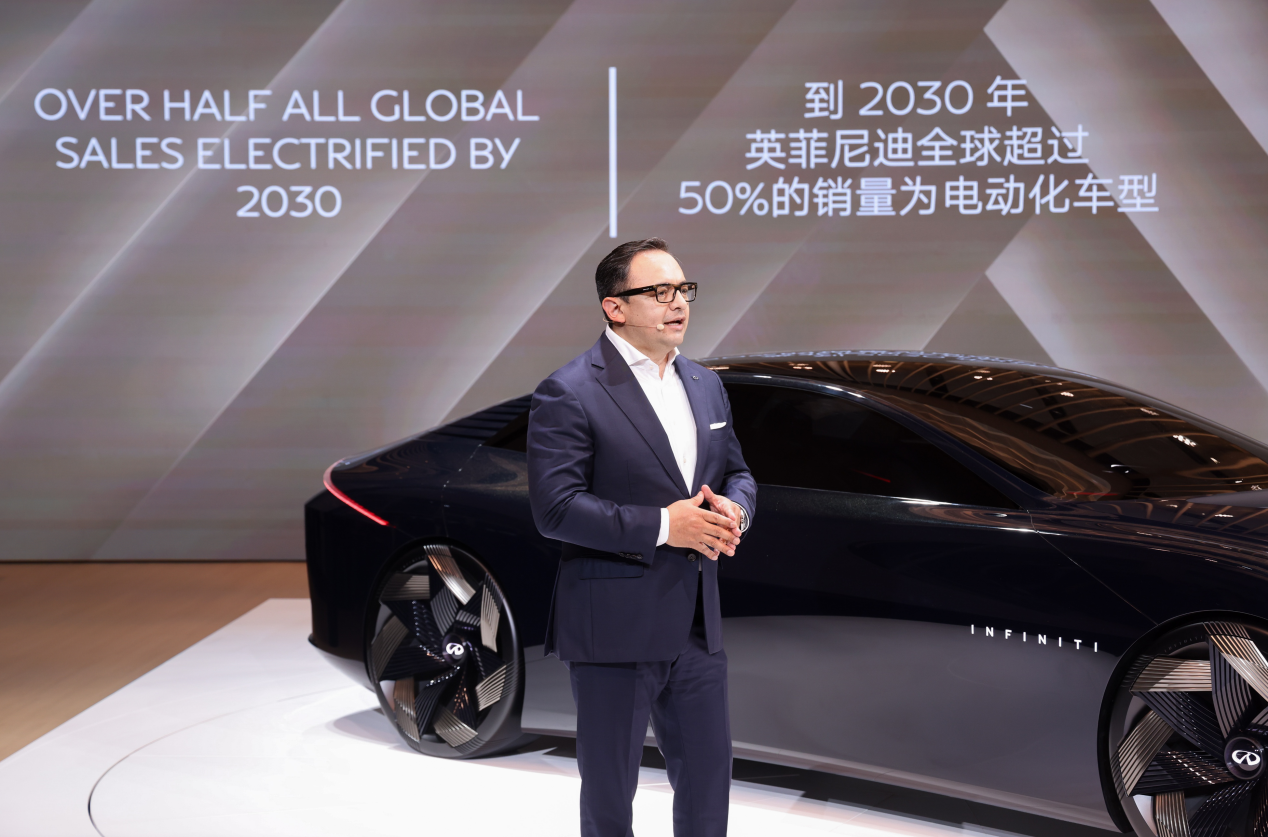 4月25日,2024(第十八届)北京国际汽车展览会盛大启幕,英菲尼迪全球高层携全新纯电动概念车——Vision