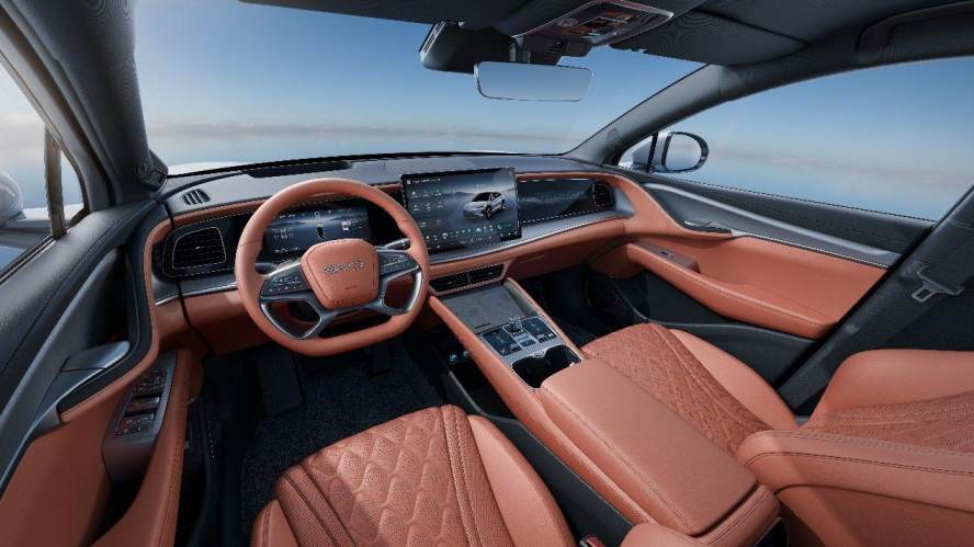 海狮07EV的内饰设计简洁实用,富有个性,优美的曲线与丰富的海洋元素打造出座舱的“悬浮、轻量、速度感”。“海洋之芯”中控布局搭配“悬浮之翼”仪表台,营造出自然雅致之感,平底四辐运动方向盘、复古式三角窗等设计,彰显出不凡的品质感与优雅的高级感。
