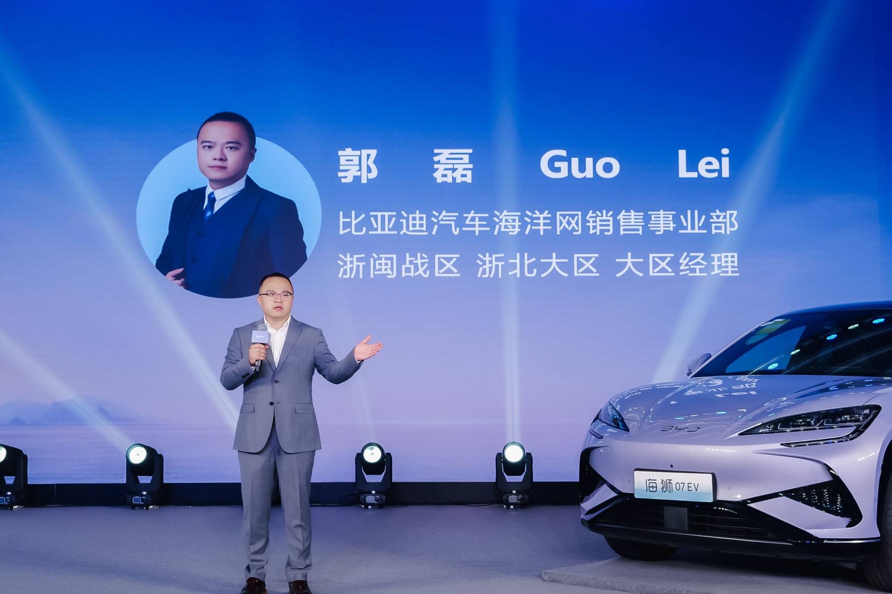 比亚迪汽车海洋网销售事业部浙闽战区浙北大区大区经理郭磊表示:海狮07EV是海洋网全新海狮IP的首款车型,延续了海洋美学设计理念,展现出优雅前卫的时尚特质。整车线条优雅灵动,具有完美的车身比例,为注重实用功能的都市SUV带来更多艺术气质和时尚感。