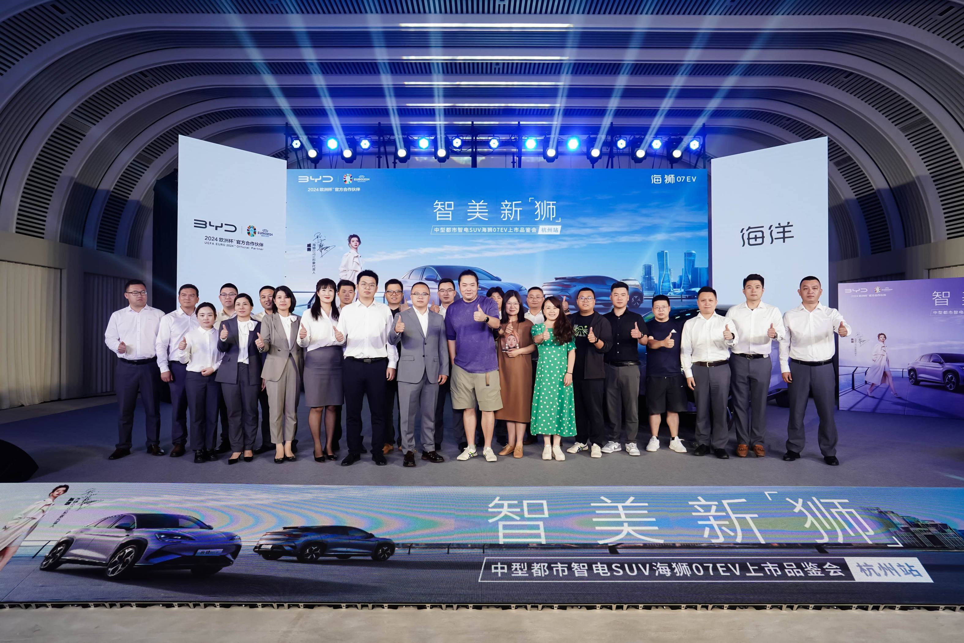5月30日杭州安和隐世栖湖宴, 智美新“狮”——中型都市智电SUV海狮07EV上市品鉴会·杭州站正式拉开帷幕,杭州四十余家主流汽车媒体共睹海狮07EV潮流魅力,乐享中型都市智驾SUV,领衔全球时尚热潮,一同记录高光“狮”刻,悦鉴雅致盛会。定位于“中型都市智电SUV”的海狮07 EV正式上市,官方指导价格18.98万元-23.98万元。海狮07EV是e平台3.0 Evo打造的首款车型,搭载12项全球首创硬核技术,拥有超100项全系标配,集安全、舒适、智能、性能、效率、颜值于一身,是比亚迪海洋网为新生代都市用户打造,汇集了领先技术与前瞻设计的创新力作。
