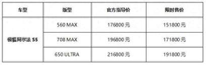 诚意之作,为你闪耀。6月15日,“高性能新奢舒适主义”极狐阿尔法S5正式上市,共推出560 MAX、708 MAX、650 ULTRA三款车型,官方指导售价分别为17.68万元、19.68万元和21.68万元,相比预售官方指导价格进一步让利3000元,并新增了标准续航版车型阿尔法S5 560MAX版本。同时极狐汽车宣告即日起至2024年7月31日下定,用户还可以享受2.5万元现金优惠权益,全系限时售价分别为15.18万元、17.18万元和19.18万元。