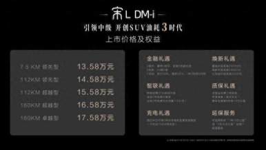 宋L DM-i此次推出纯电续航里程75KM、112KM和160KM三个版本,共5款车型,售价13.58万-17.58万元,从技术、平台、美学、智享、安全五大维度,全面引领中级SUV新趋势,刷新中级SUV消费体验,树立新价值标杆,致力于成为紧凑级用户升级之选、燃油中级用户新能源换购之选、年轻家庭一步到位之选。