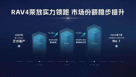 肩负中国用户的期待,RAV4荣放于2009年进入中国,15年间,销量始终稳居行业前列,收获了超200万中国家庭用户的信赖;自2019年推出智能电混双擎版以来,当年市场份额便提升了1.25%。在理性购车成为主流的今天,荣放更是逆势上扬,当前2024年前8个月细分市场份额达到了9.31%,并在7月以1.9万台的单月销量,位居燃油SUV细分市场第一名。可以说,在城市SUV市场,RAV4荣放已经成为用户不可或缺的必选项之一。