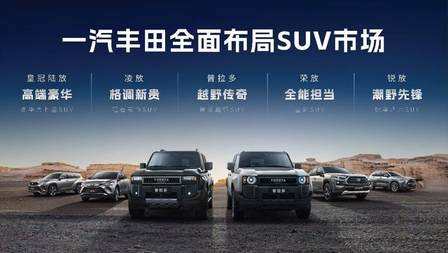 新RAV4荣放和新HARRIER凌放的焕新上市,为一汽丰田SUV家族阵营实力加码。目前,一汽丰田汇聚了国内超全的丰田明星SUV车型,形成了以硬派越野普拉多领衔,包括豪华大七座SUV皇冠陆放、轻奢都市SUV HARRIER凌放、全能SUV RAV4荣放,以及悦享活力SUV卡罗拉锐放在内的全明星阵容。同时,一汽丰田SUV家族具有同样强大的越野基因、同样先进的智能电混双擎技术、同样的高保值、同样的高可靠性四大共同特征,陪伴用户打开“亦城亦野”的新世界,一起“探索生活的一切可能”。