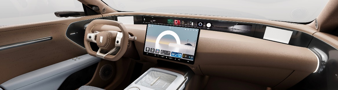 进入车内,阿维塔07营造了都市豪华头等舱的奢华氛围。业内独家35.4英寸4K全景远端屏、15.6英寸华为2K智慧中控屏和双6.7英寸高清后视屏,形成4屏环拥设计,带来科技豪华新体验。星河紫与云山棕两种主题色,均采用双拼色设计,呈现出典雅的豪华质感。车内软包面积达到10平米,顶棚采用超纤绒类麂皮,柔软舒适、健康环保。