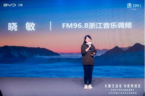 作为新能源汽车的领军企业之一,比亚迪一直秉持着环保理念。现场特邀FM96.8浙江音乐调频 晓敏女士分享了她对于2025款唐的感受,新款唐DM-i在动力系统和能耗表现上的升级,正是为了更好地实现节能减排的目标。通过技术创新和不断优化产品性能,比亚迪正在为实现可持续发展贡献自己的力量。