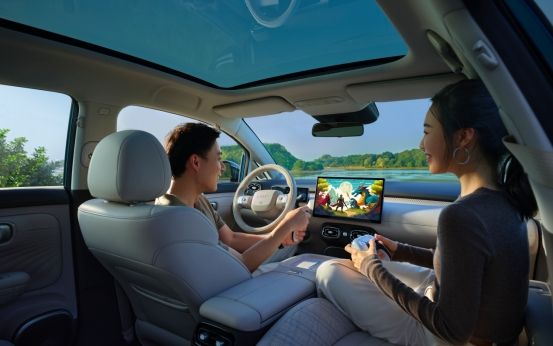 秉承埃安在空间上的独门绝技,10万级的埃安UT,竟然做到了媲美C级豪车的后排空间体验。按照郭麒麟的话来说,埃安UT的后排简直“大到夸张”。埃安UT长、宽、高为4270×1850×1575毫米,轴距2750毫米,同级第一。同级最宽敞905mm后排腿部空间,媲美C级豪华车;同级最宽的1330mm后排臀部空间,三人并排乘坐不碰腿。