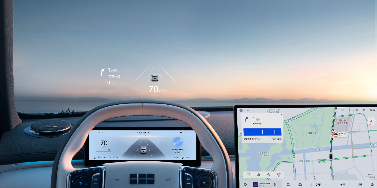 车端主流高频应用全配齐,Flyme Desgin设计风格超自然,壁纸桌面随心换,更有音乐小窗模式,SmartBar快速切换后台应用,操作像手机一样好用。搭配14.6英寸窄边中控屏+10.2英寸全液晶仪表盘+13.8英寸超清W-HUD抬头显示,带来超享受的三屏联动。其中,抬头显示更拥有高达12000nits亮度,媲美豪华高端车型,即使是在直射阳光下依然能够提供清晰可见。