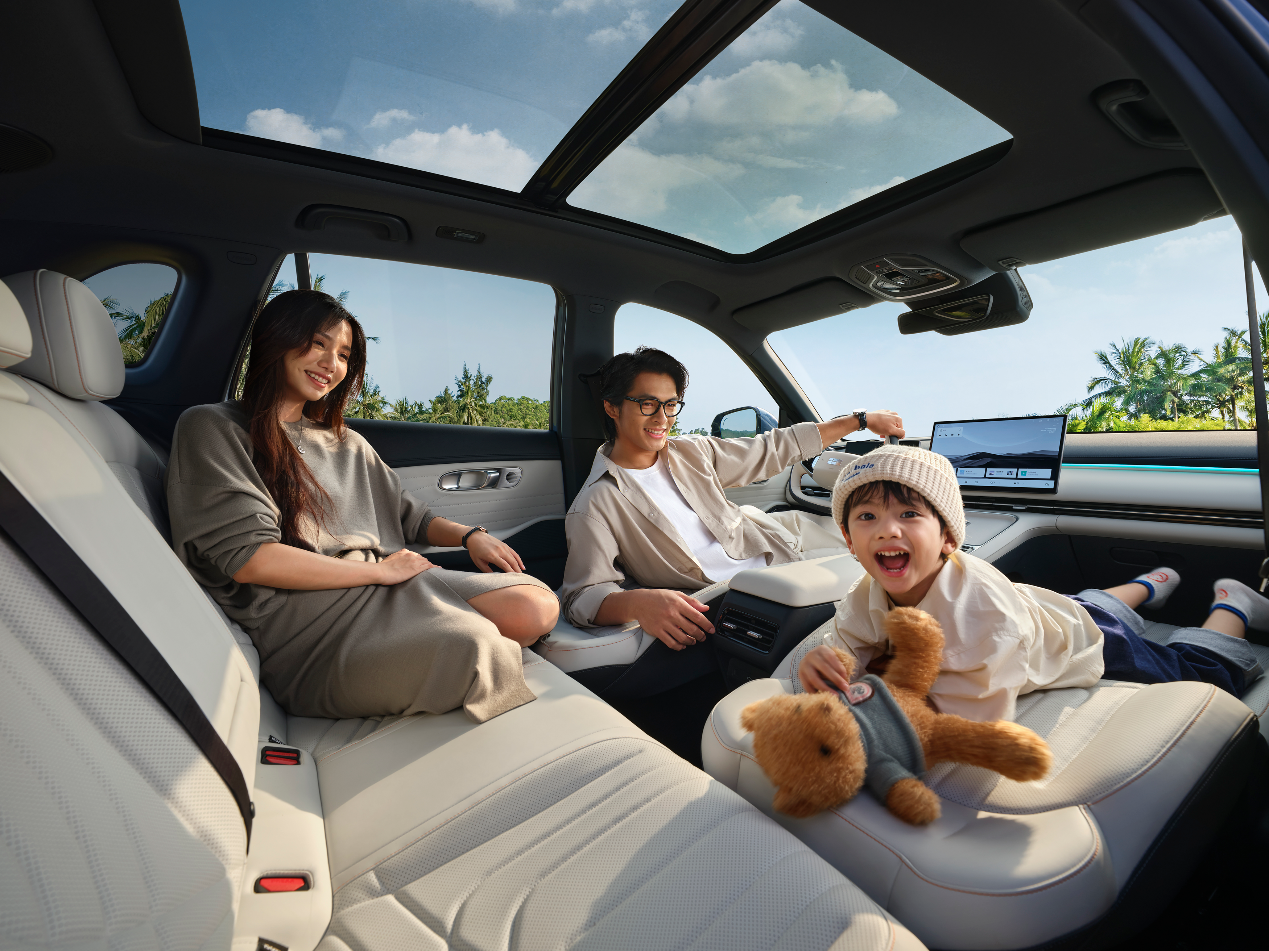 吉利银河星舰7 的34处巧思储物空间,分区收纳,再多装备也能各归其位。后备箱采用创新的上下隔板设计,带来 428L+100L下沉隐藏空间共528L超大可变后备箱空间,相当于“买房送飘窗”。后排头部、肩部、膝部空间以及坐垫长度、高度、厚度均同级第一,告别新能源“小板凳”,让每个成员都能坐得舒适。同时,后排放倒后容积达到2065L,秒变1.5米舒适大床房,也可放滑雪板等超大装备。同级最大上下车通道和最低门槛,给每一位家庭成员带来宽阔不拘束的乘坐体验。
