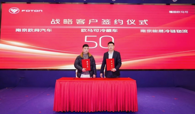 在卓越产品品质、强悍性能表现的加持下,活动现场,欧马可与南京知名冷链物流企业达成战略合作,并举办50台欧马可冷藏车产品签约仪式,将以更高效的物流装备,为南京冷链物流发展注入新动能,加速城市货运高端化进程。