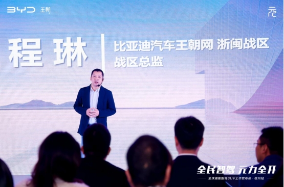 比亚迪王朝网浙闽战区 战区总监程琳登台致辞,深入剖析了“技术平权”的品牌理念,并宣布第二代元PLUS智驾版和元UP智驾版正式登陆杭州市场。