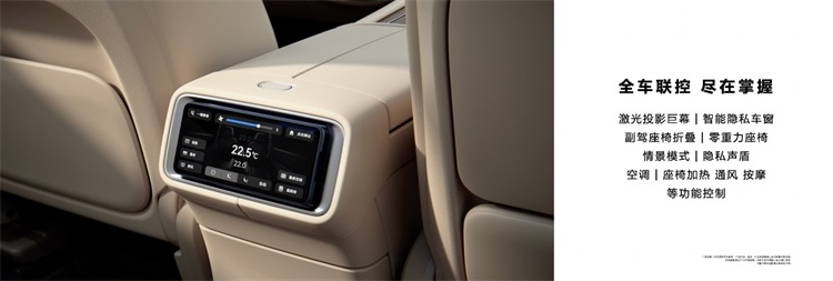 问界M9两侧后排升级智能隐私车窗[6],4档透光度可调,支持门板物理旋钮、语音等多种调节方式,实现看得见风景,守得住隐私的领先体验。创新暮夜空间,关闭遮阳帘、车窗,智能隐私车窗调至最暗、打开幕布,关闭氛围灯、阅读灯,一键进入隐私、休憩时刻。