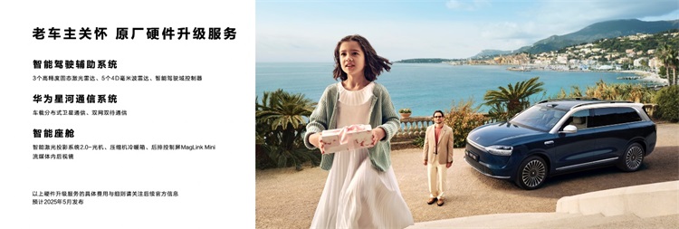 此外,鸿蒙智行将宠粉进行到底,为问界M9现款车主提供了极具诚意的原厂可选的硬件升级服务,相关硬件升级服务的具体费用与细则,预计2025年5月发布,请关注后续官方信息。同时,现款问界M9将持续OTA升级软件特性,让车辆真正做到“常用常新”,为用户持续提供极致的智慧出行体验。