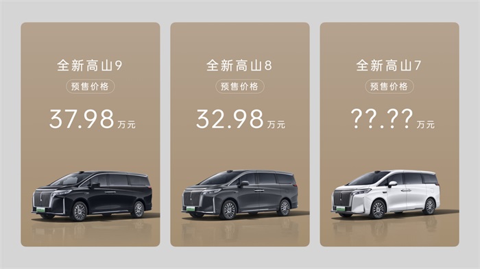 本次全新高山预售发布会上,共发布两款车型价格,其中高山8 32.98万元、高山9 37.98万元。