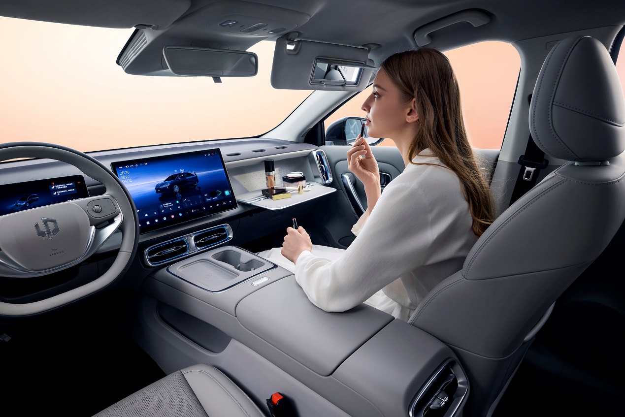 零跑B01沿用了B系列首创的"百变副驾空间"设计——通过6个魔术拓展孔与1个矩形凹槽,可自由组合折叠桌板、手机支架、储物盒、水杯架、挂饰等配件,适配办公、娱乐、收纳等多场景需求。