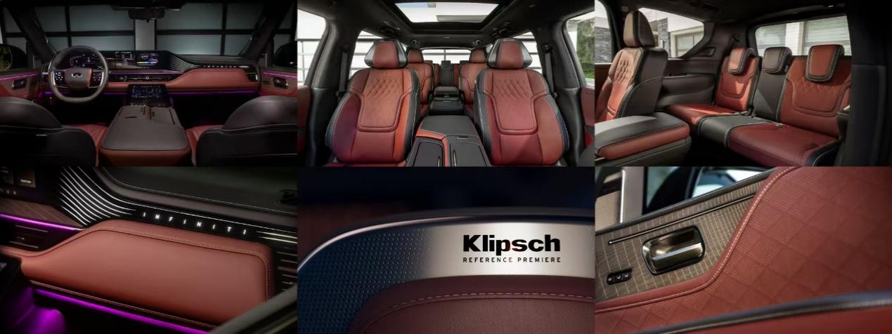同时,英菲尼迪携手美国教父级音响品牌Klipsch杰士,为QX80打造了专属24扬声器Reference Premiere音响系统,带来非凡听觉盛宴。其中,前排搭载独立音区功能的头枕音响,可单独播放内容,让前后排互不干扰,各有所享。