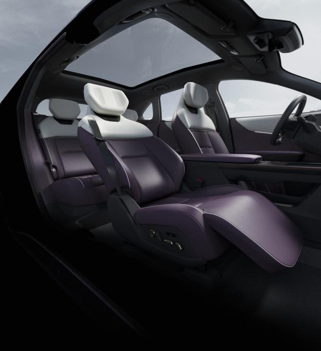 EZ-60在SUV设计领域首次搭载了9风道设计。第一,降低了风阻系数,整体风阻优化60.8 conuts,让续航里程提升41公里;其次,降低了行驶风噪,车内语音清晰度提升了8%;第三,在高速行驶时,风道可以为后轴提供最高705N的下压力,让操控更加灵敏,更加平稳。独特的D柱风道设计,形成了EZ-60独特的视觉符号,进一步强化了车身的动感姿态。全新的紫色车漆,初见惊艳,再见倾心。犹如星芒初绽的暮空,真实又梦幻,神秘又尊贵,将电动车型的未来感与新生优雅融汇于一身。