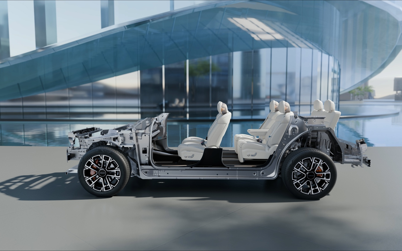 该架构只聚焦3050mm以上轴距、5000mm以上车长的大型高端电混车型,赋能领克900创造更大的空间。领克900车身长5240mm、宽1999mm、高1810mm,在保证安全结构和前引擎舱空间的前提下,可实现同级最大6.16㎡内部空间、同级最高88.2%得房率,以及最高1293mm的车内空间高度,带来全员平权的空间享受。