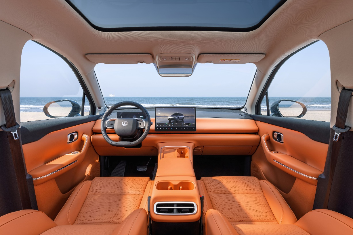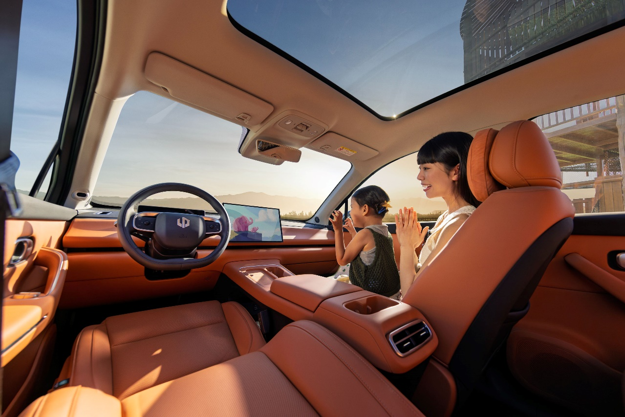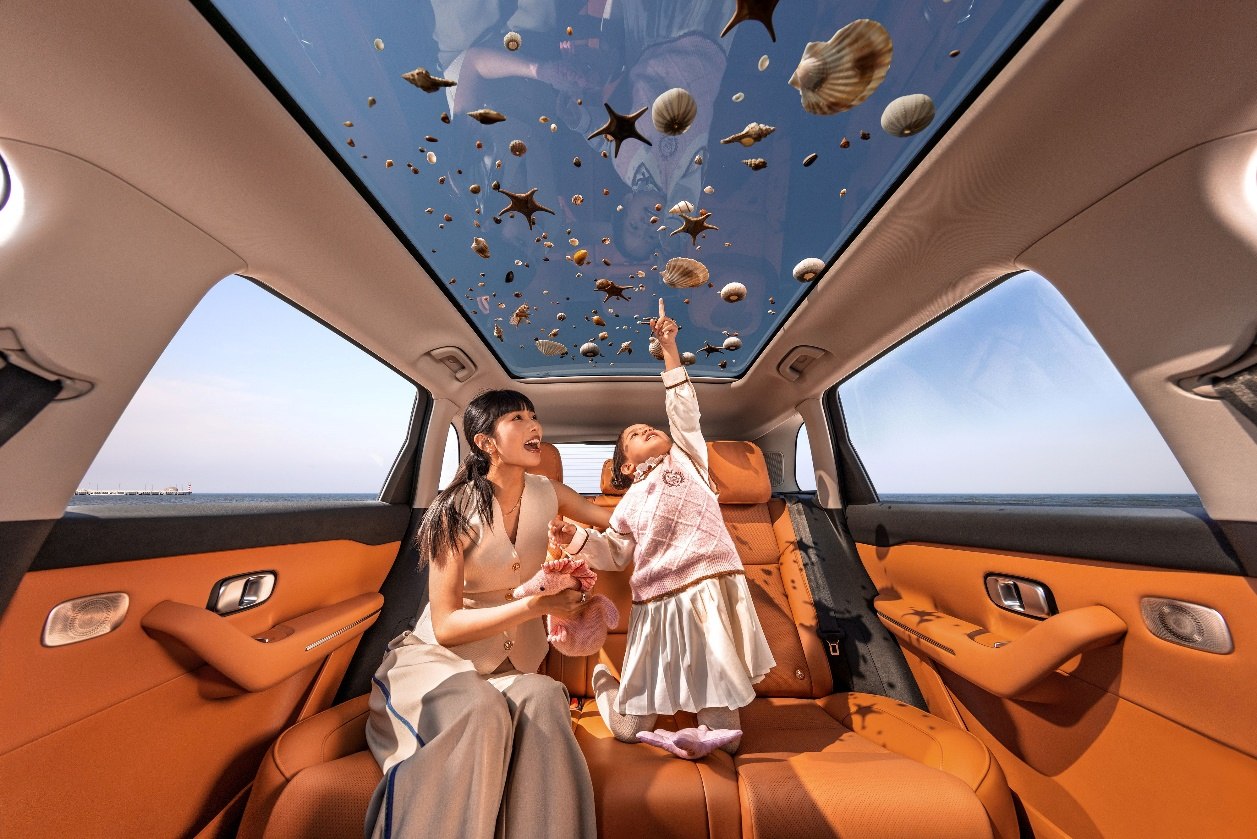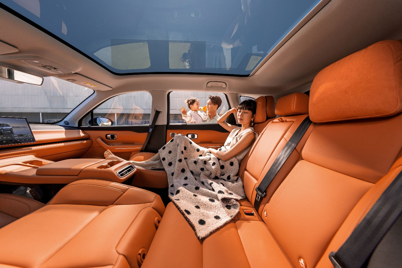 新车内饰依旧采用"圆角矩形"设计元素,大量运用平直线条与柔和曲面的结合,既保证了视觉上的简约现代,又将儿童在车内活动的碰撞风险降到最低。内饰风格有赤霞橙和星垣紫两种可供选择,并升级了50W风冷无线快充,中控台新增饰条装饰,配合升级的双缝线座椅和新款方向盘设计,营造出轻奢质感。