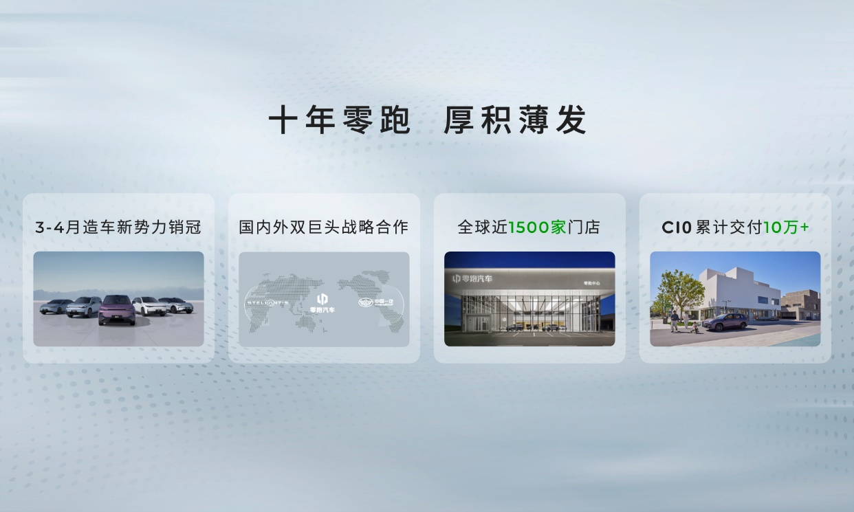 上市14个月以来,零跑C10全球累计交付超过10万台,助力品牌销量爬坡,2025年1月至4月零跑汽车海外出口销量超13600台,位居中国新势力品牌第一名。国内方面,3月、4月零跑蝉联新势力品牌销量榜首,国内外双获冠军,完美诠释了零跑“科技普惠,好而不贵”的产品战略价值。