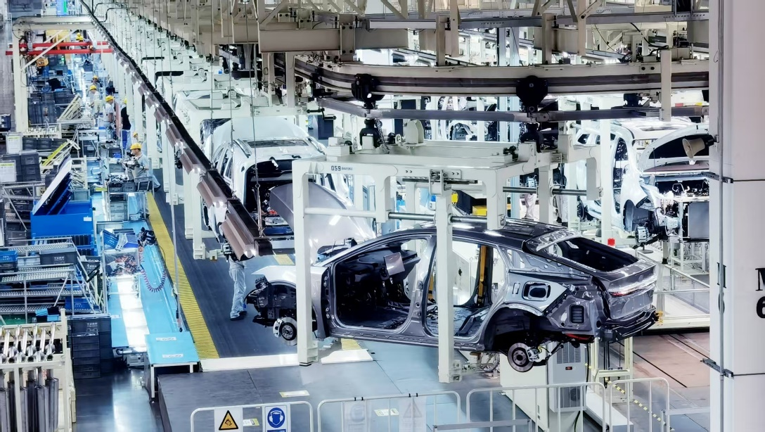 <一汽丰田新能源工厂 总装车间 底盘生产线的bZ5车身>
