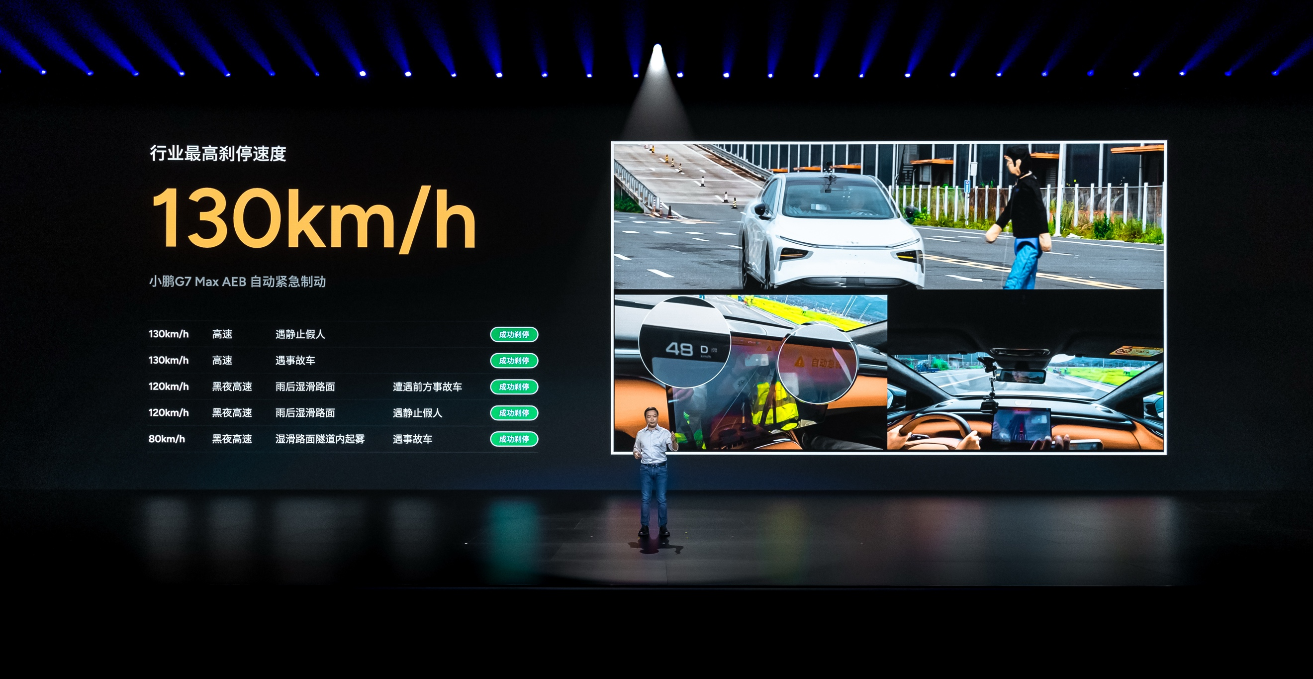 与此同时,新车搭载14项主动安全功能,最大程度提前防范每一次意外。其中,小鹏G7的AEB自动紧急制动能力在实测情境下实现130km/h最高刹停速度,刷新行业能力上限。除了提高刹停速度上限外,小鹏G7面对低矮儿童假人路障、夜间无路灯路段行车等高难度场景,均能在130km/h高时速稳稳刹停,刷新行业现有纪录。