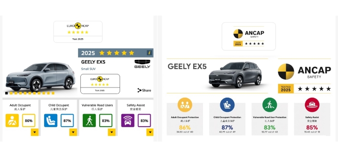 超行标的严苛测试和真实案例,无不表明吉利银河E5在神盾短刀电池的赋能下,拥有顶级安全性能。实际上,吉利银河E5已在此前顺利通过中汽中心行业首次超国标“整车安全魔鬼串联试炼”、获得NESTA六维电安全认证、成功挑战50km/h正面中心柱碰超纲难度试验,还荣获Euro NCAP与ANCAP全球双五星安全最高评级,成为目前少有获得Euro NCAP和ANCAP“双五星”安全评级的10~15万级中国品牌纯电SUV,做到“全球都安全、全球都五星”。