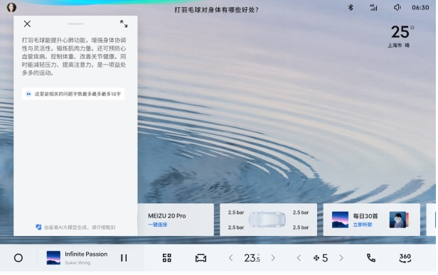 新版Flyme Auto还新增能量中心“结束充电”按钮、锁车提示音自定义、WANOS全景声新增零压空间、服务大厅APP等功能,车机Ai银河精灵、手机Ai银河精灵也迎来升级,同时优化语音车控功能32项、媒体指令6条,使用户全场景用车更智能,出行服务体验更好。