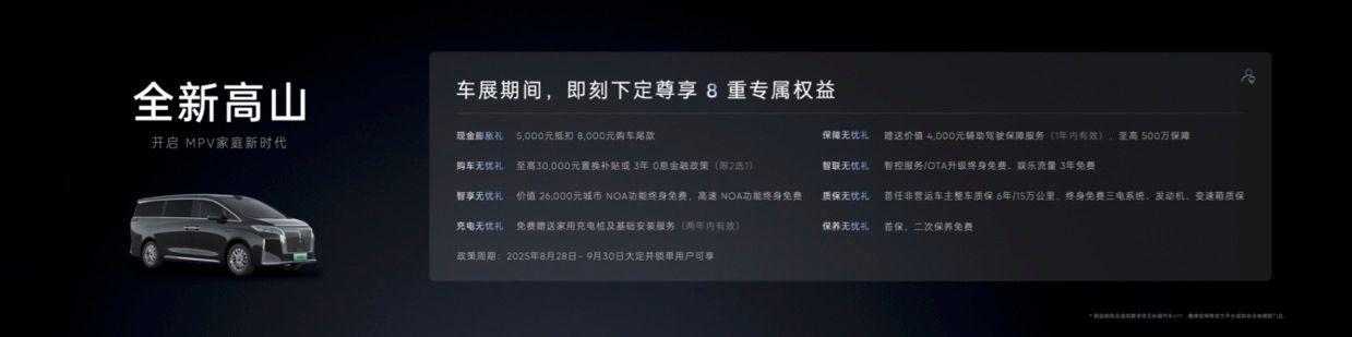 全新高山自5月上市至今,已累计交付接近2万台,数次成为新能源MPV周销榜冠军,重塑了国产新能源MPV价值标杆,开启MPV家庭新时代。而即将上市的高山7则是一款专为家庭用户量身打造的车型,定位“一家人的移动大客厅,每个人都有好位置”。高山7是30万内「得房率第一」「唯一标配激光雷达」「唯一标配智能四驱」「最灵活」「最安全」的MPV,还未上市就已备受瞩目,将进一步扩大魏牌在新能源MPV细分市场的领先优势。