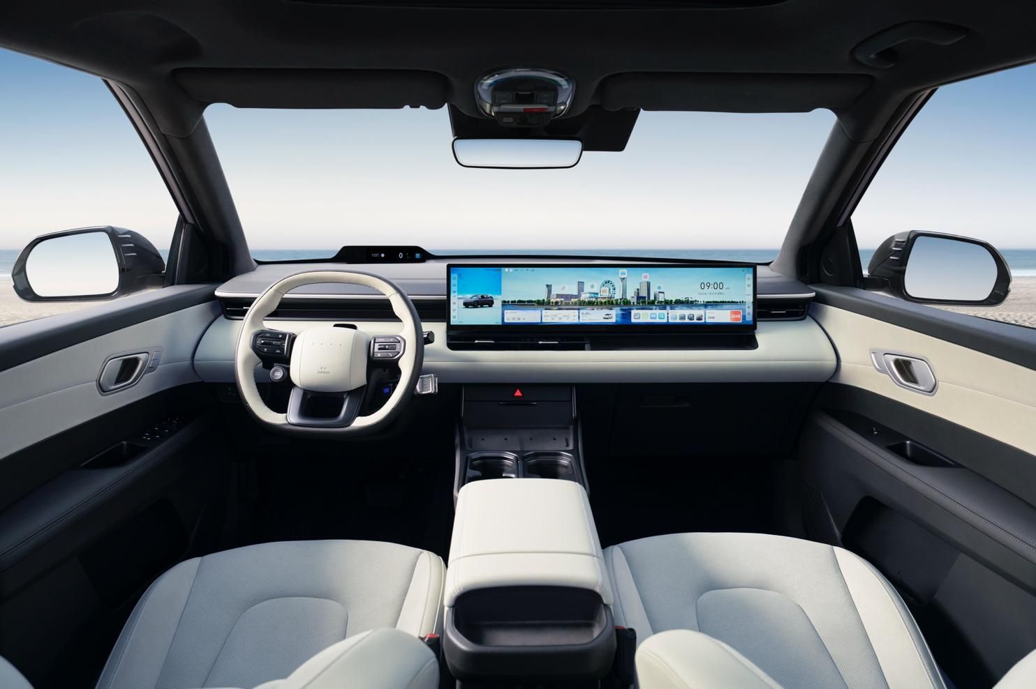 车内,EO羿欧的简约环抱式座舱以流畅的环绕线条勾勒出驾乘空间,膝部以上约44%的区域采用仿麂皮材质包覆,触感接近天然麂皮的细腻,凸显车内的高级感与乘坐舒适度。集成式视觉方案,让驾驶者在不离开方向盘的前提下即可完成主要操控,同时兼顾副驾的观影与娱乐需求。