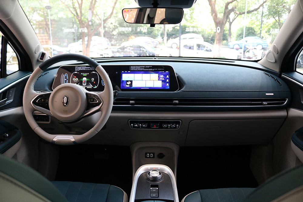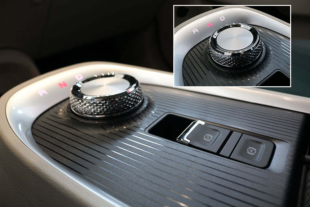欧拉好猫莫兰迪版的档位采用了旋钮式设计,旋钮阻尼感良好,对于女性用户来说也是简洁易操作。电子手刹和自动驻车按键则位于档位后方,让日常驾驶更加便捷。