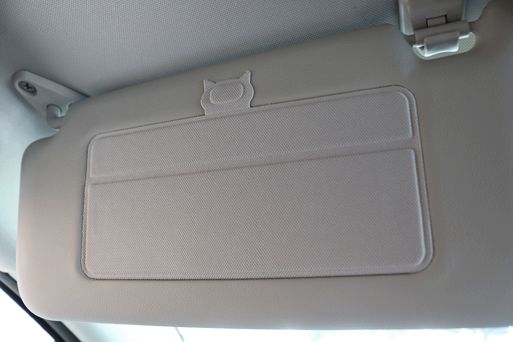 作为女性用户为主的欧拉好猫莫兰迪版,特别在其前排两个遮阳板内都设计了化妆镜,打开化妆镜盖板后,可见其在镜子周围设计了一圈灯光,无论是在白天还是夜晚都能带不错的"成像"效果。