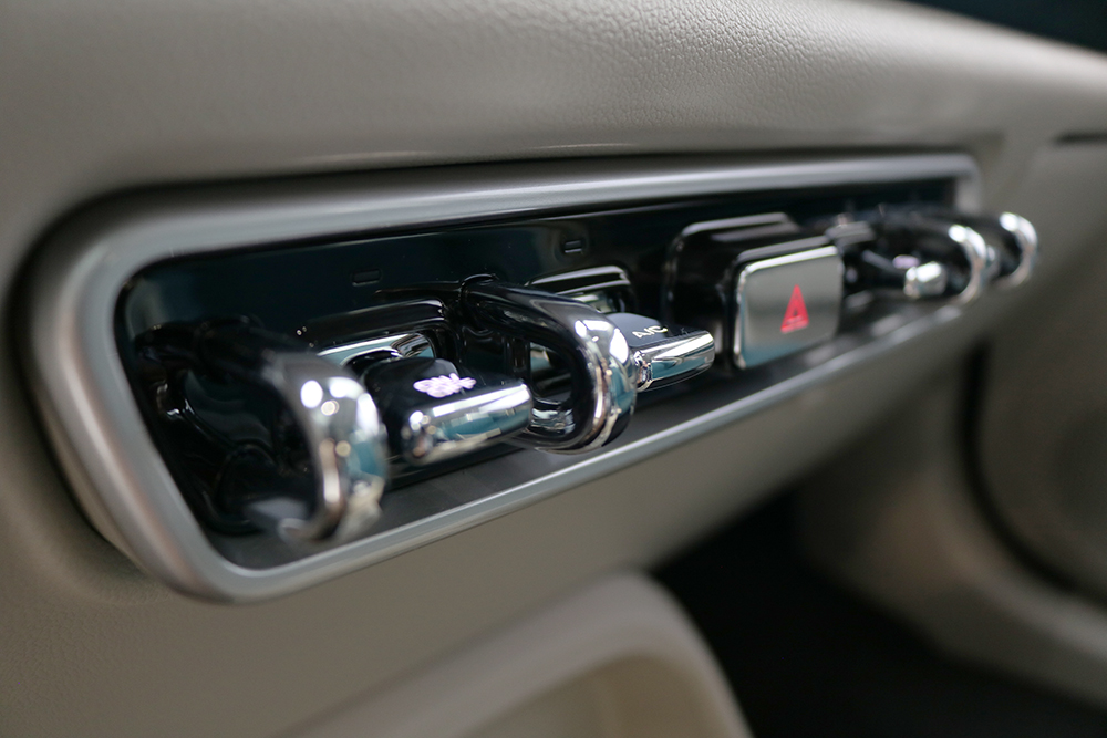 值得一提的是,中控台上少量物理按键设计成了复古拨杆。既潮又有格调。