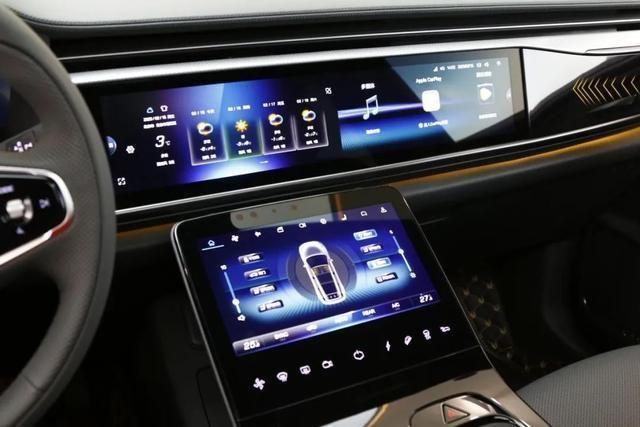 首先,在智能座舱方面,先不论三款车体验如何,但就视觉观感来说,极狐阿尔法T的智能座舱更震撼。其搭载了20.3英寸哈曼超宽4K大屏,不仅科技感强,显示效果细腻,而且实际体验也非常流畅。